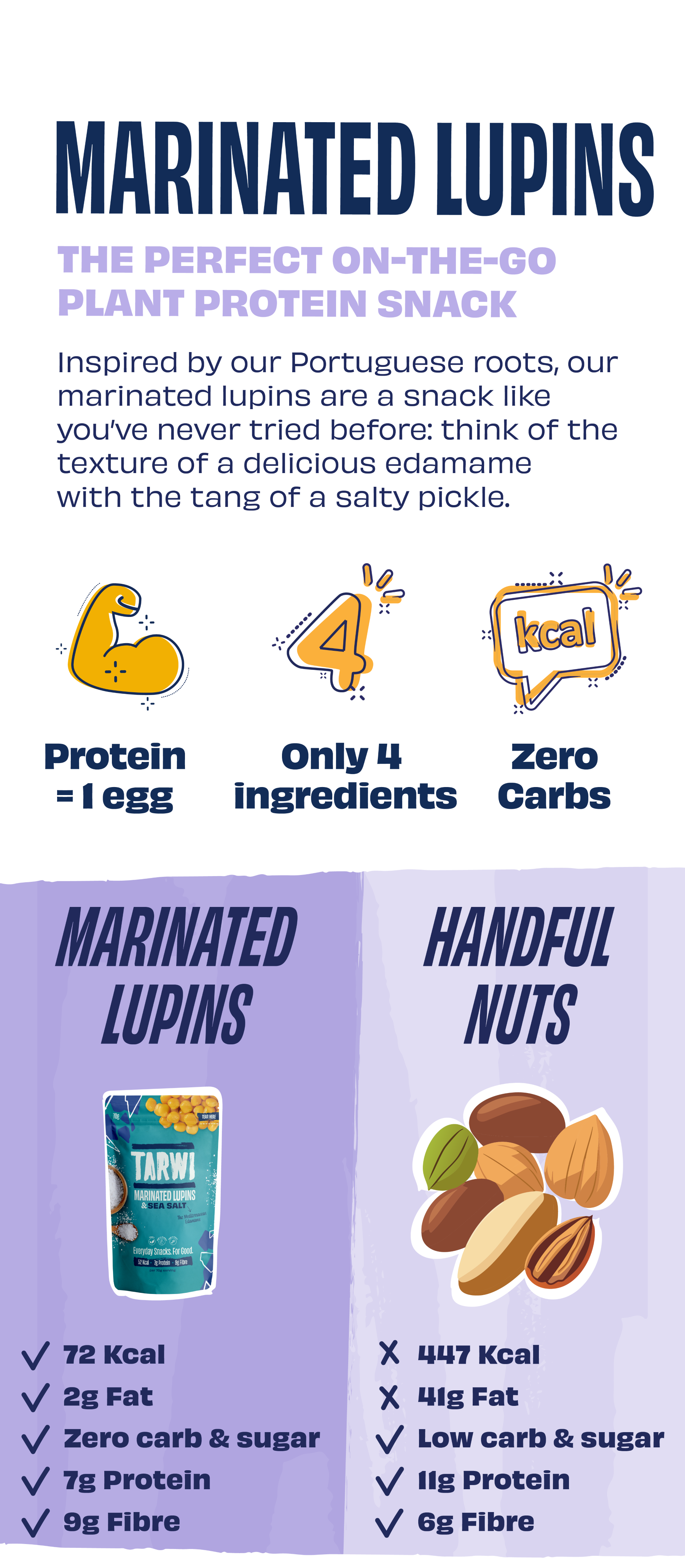 Chile: altramuces cocidos (98%), sal marina, aroma natural de guindilla, corrector de acidez (ácido láctico)